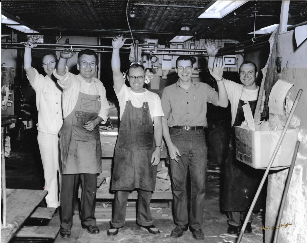 This is a photo of The Munising News staff from probably the 1950s, which was located in the lower level of the building, now occupied by the Interpretive Center on Munising Avenue. I cannot recall the name of the gentleman in the middle, but starting from the left is Charles Symons, Mr. Sadak, Wally Ahlborn and Ed Bashaw.