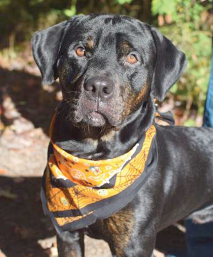 - Dovah is a male, neutered rottweiler, 2-years, 2-months old.