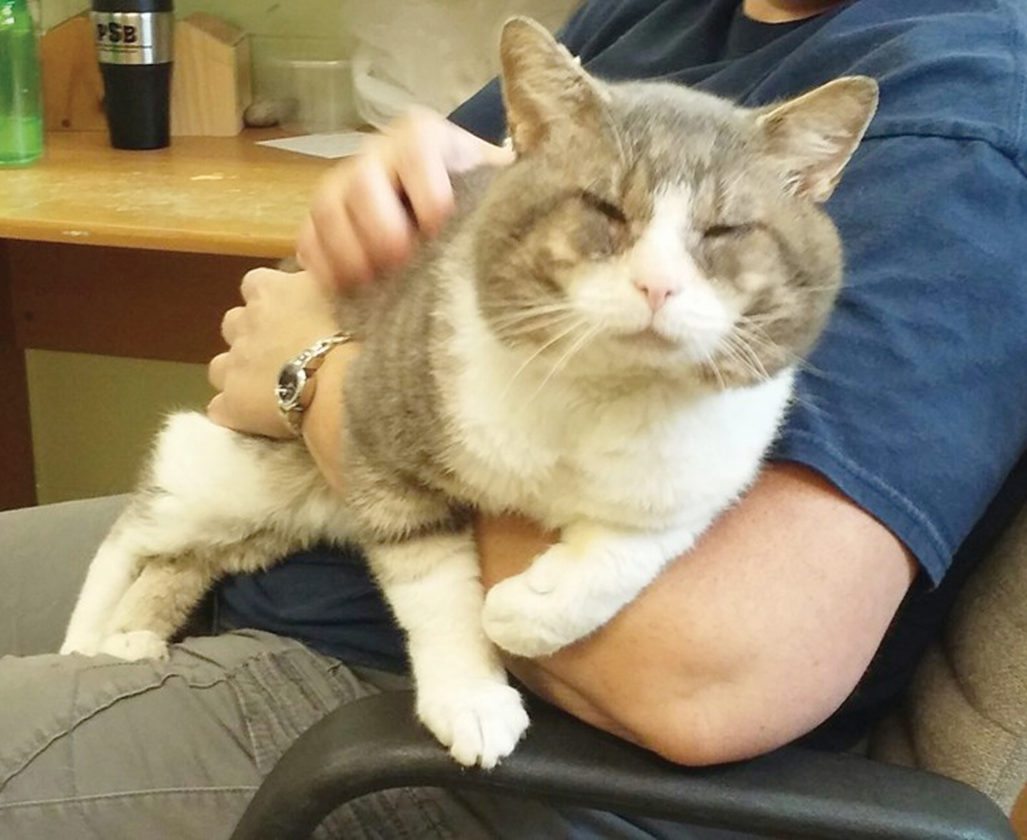 - Albert is a 9-year-old neutered gray and white tiger stripe male.