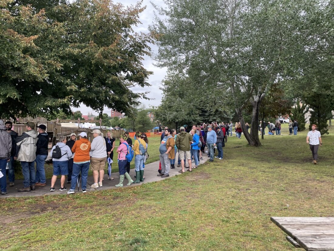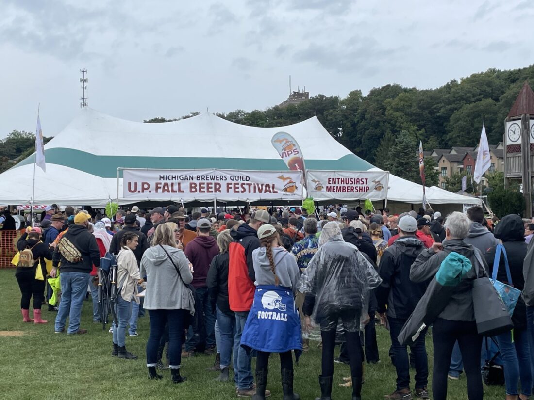 Hundreds of beer enthusiasts brave the rainy weather to sample some of the hundreds of brews on tap during Saturday’s 13th annual Upper Peninsula Beer Festival at Mattson Lower Harbor Park in Marquette.