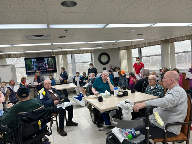 The proceeds of the sale was used to hold to hold a pizza party for the residents of the Jacobetti Veterans Home, where the also celebrated with Christmas treats, The K-4 students also brought the sounds of Christmas to Jacobetti residents when they went caroling at the home before the holiday. (Photos courtesy of Father Marquette Catholic Acadamy)