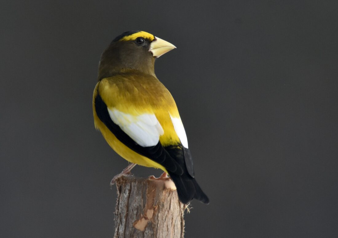 An evening grosbeak is shown. (Scot Stewart photo)
