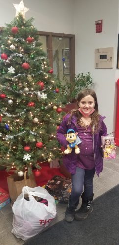 Lauren LaBrecque, 7, of Marquette is shown with her donation to The Mining Journal’s Cheer Club on Dec. 17. The Cheer Club, which kicked off Nov. 27, collected unwrapped toys and gifts to be donated to local children and families in need during the holiday season. (Journal photo by Ryan Spitza)