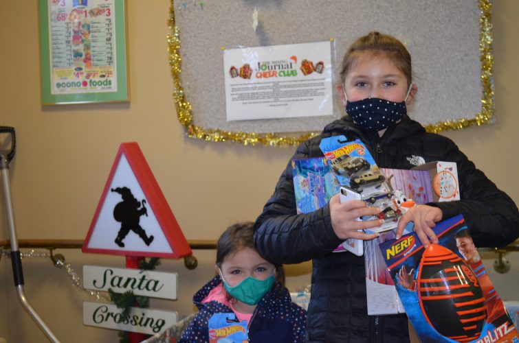 Harlow and Rowan Harrison are shown with donations they dropped off to The Mining Journal’s Cheer Club on Tuesday. The Cheer Club, which kicked off Nov. 27, collects unwrapped toys and gifts to be donated to local children and families in need during the holiday season. (Journal photo by Lisa ...
