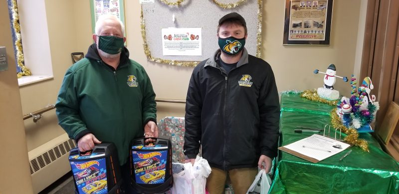 Rick Schwemin, president, left, and Bob Erspamer, treasurer, of Northern Michigan University’s AFSCME union are shown with their donation to The Mining Journal’s Cheer Club on Tuesday. The Cheer Club, which kicked off Nov. 27, collected unwrapped toys and gifts to be donated to local ...