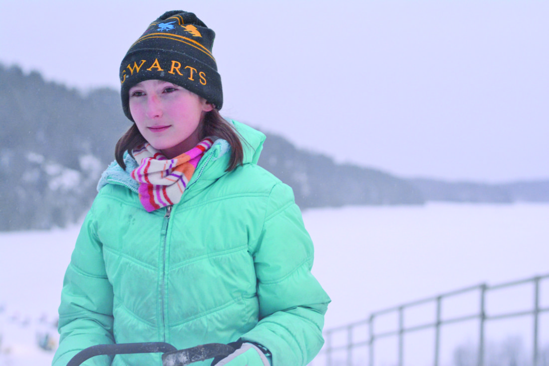 Emma Spade (11) stands atop of the sledding hill at the Al Quaal Recreation Area with Teal Lake in the background during the annual Northshore Christian Church tubing party. (Journal photo by Corey Kelly)