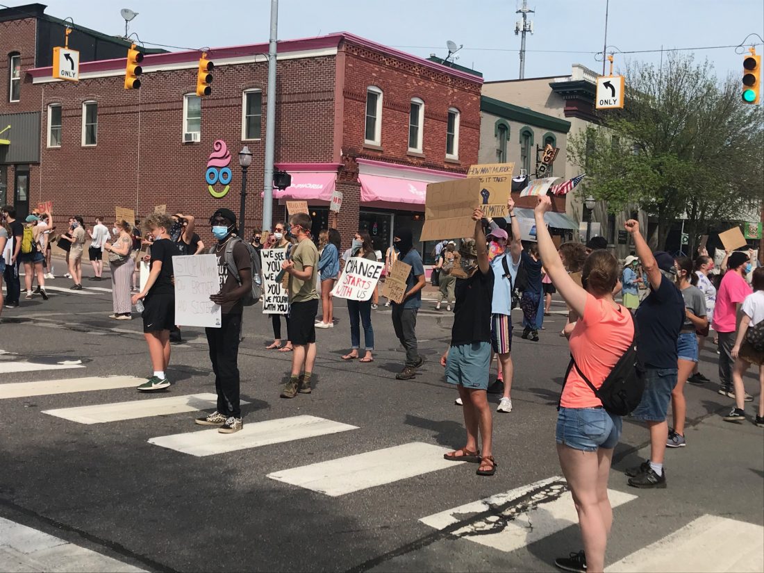 A smaller number of protesters visited Marquette’s downtown Tuesday afternoon, in response to the killing last week of George Floyd by Minneapolis police. (Journal photo by Christie Bleck)