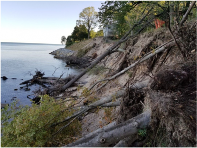 - Erosion from high water levels on the southeastern shore of Lake Michigan has exposed tree roots. (Courtesy image via CNS)