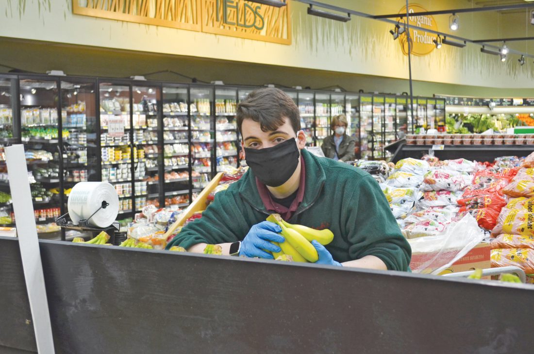 - Tadych’s EconoFoods employee Nick Goings stocks the produce section at the Marquette store in March 2020 while wearing a face mask and gloves in response to COVID-19. (Journal file photo)