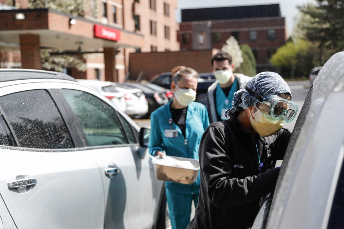 In this April 15 photo, emergency room technicians test patients for COVID-19 outside of the emergency entrance of Beaumont Hospital in Grosse Pointe. Michigan has become the current national hot spot for COVID-19 infections and hospitalizations at a time when more than half the U.S. adult population has been vaccinated and other states have seen the virus diminish substantially. Beaumont Health warned that its hospitals and staff had hit critical capacity levels. (AP photo)