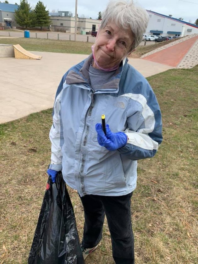 - Christine Oaks of Gwinn was one of the area residents who took part in the Northern Michigan University Conservation Crew’s cleanup day on Saturday, a kickoff event to Anderton’s Earth Week. (Photo courtesy of Margaret Brumm)