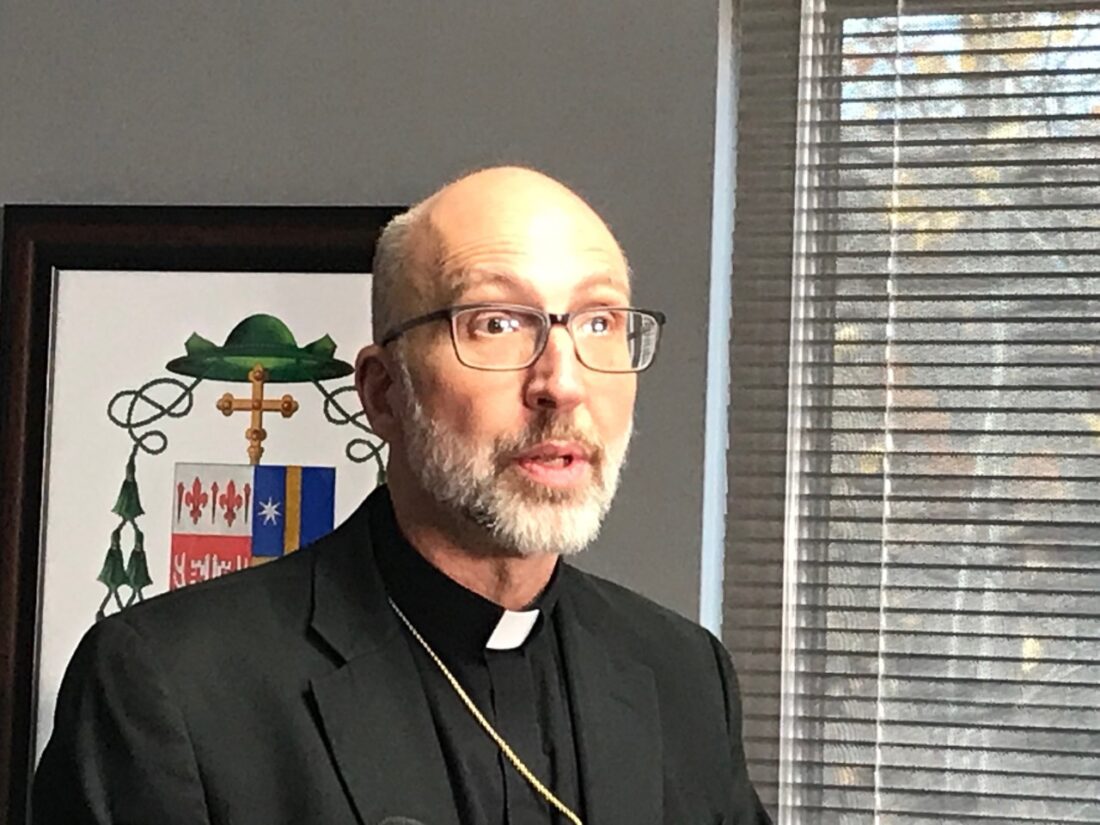 Bishop John Doerfler of the Diocese of Marquette discusses a report from the Michigan Department of Attorney General regarding allegations of abuse in the diocese. Doerfler said the diocese has and will cooperate with the ongoing investigation. (Journal photo by Christie Mastric)
