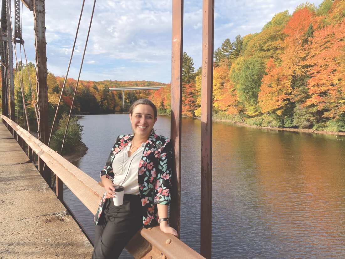 The Upper Peninsula Land Conservancy has closed on a land purchase that will be known as the Dead River Community Forest. Shown here is UPLC Executive Director Andrea Denham on the old County Road 510 bridge in Negaunee Township, located near the DRCF. (Photo courtesy of the UPLC)