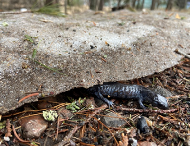 This will be in support of the blue spotted salamander, which crosses a park street in large numbers during its annual spring migration to nearby wetland breeding grounds.