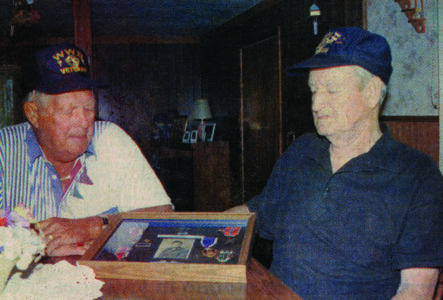 - Don O’Neill, right, sits with the fellow soldier who saved his life on D-Day, Charley Tonemacher, left. This was featured in a 1999 Mining Journal article. (Journal file photo)