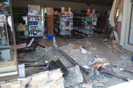 With the vehicle removed by emergency crews, damage to the store is pictured. (Journal photo by Alexandria Bournonville)