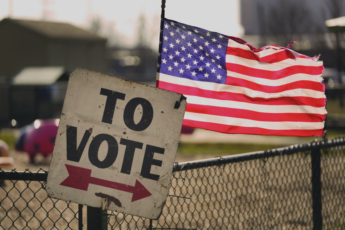 A vote sign and American flag are shown outside a Michigan primary election location in Dearborn, Mich., in this AP file photo. The unofficial results for Tuesday’s primaries are in. In November, Callie Barr will battle it out with incumbent Jack Bergman for Michigan’s 1st Congressional District while incumbent Jenn Hill will face off with Karl Bohnak for the House of Representatives 109th District. (AP photo)