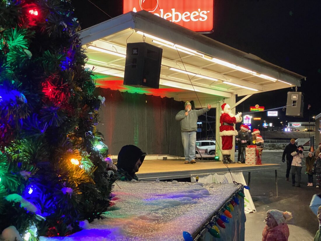 On Tuesday evening, MediaBrew Communications Network News partnered with Goodwill to light a 32-foot Christmas tree in the parking lot next to Applebee’s in Marquette Township. Youngsters from Studio Dance Arts performed. The Grinch made a brief appearance before being escorted off stage by a Marquette County Sheriff’s deputy. And Santa rode into the gathering on a firetruck before lighting the tree with help from children. After the tree was lit, families gathered inside the Westwood Mall for hot dogs and hot cocoa and some conversations and photos with St. Nick. (Journal photos by Vickie Fee)