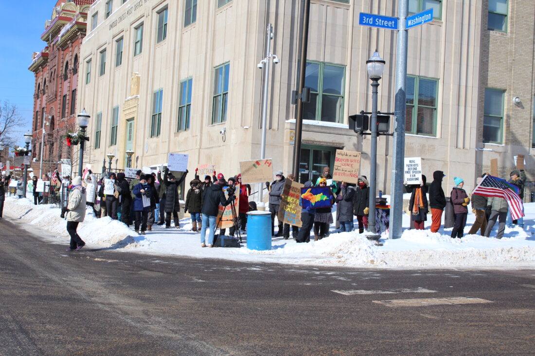 Otis, along with many others, braved temperatures as low as -13 with windchill to protest. Yet the protesters saw more and more people join them throughout the event which started at noon. Trump protesters did see some counterprotesters from people driving by and yelling at the protesters, though they saw much more support from those honking in agreemeent and sharing kind words.