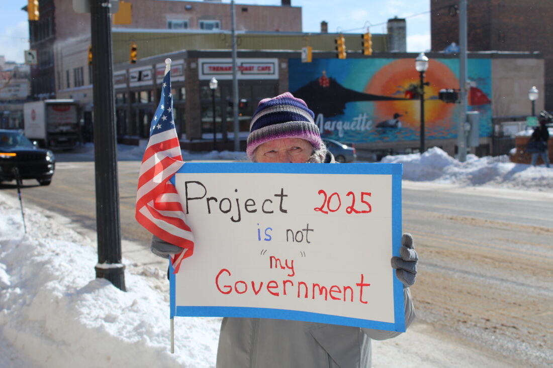 Jacquilyn Otis, an 80-year-old woman from Marquette, attributes her life experience to why she felt she had to protest; as well as her own life being affected by the Trump Administration, and the recent Federal layoffs.