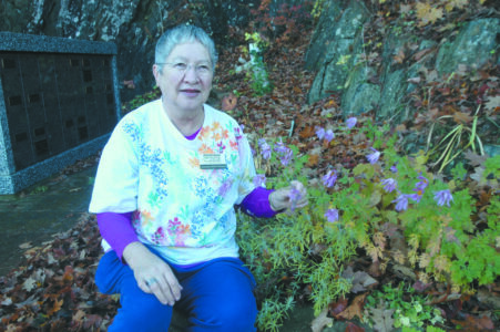- Retired master gardener Jeannette Hauver is seen tending a flower garden at Park Cemetery in Marquette. (Journal file photo)