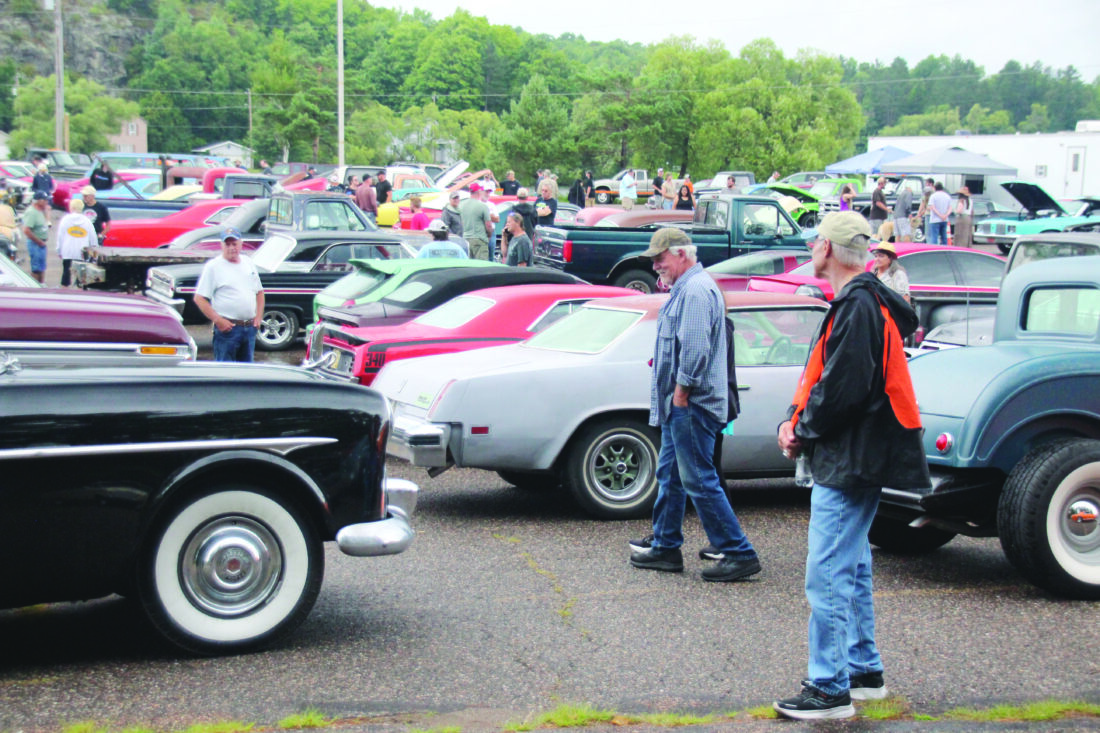 Spectators and classic car owners make their way around the parking lot of the Cliffs Shaft Mine Museum in Ishpeming on Saturday for the 23rd annual Buzz the Gut car show and parade. (Journal photo by Justin Marietti)