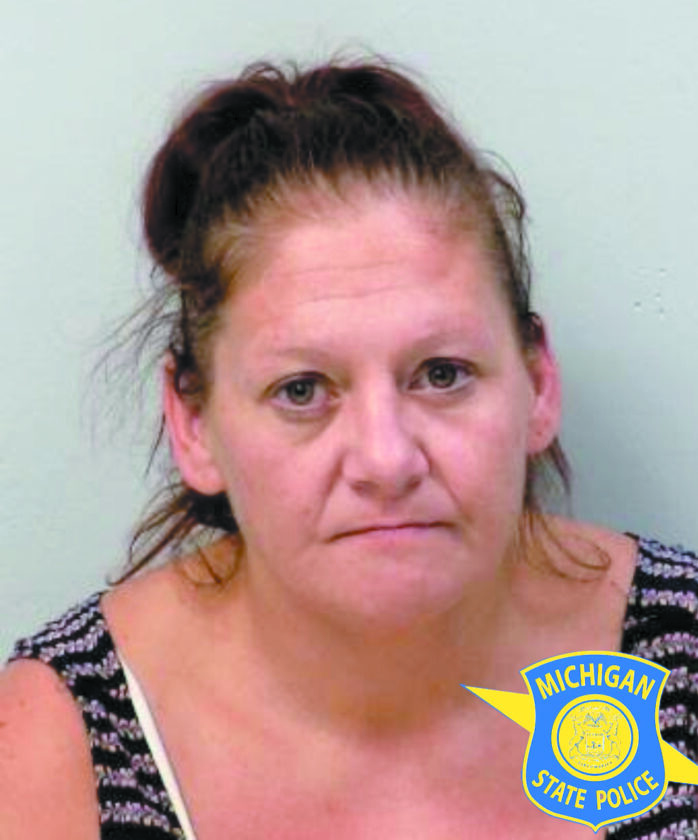 SAULT STE. MARIE — A 45-year-old Brimley woman has been arraigned on felony drug and obstruction charges following a traffic stop in which she allegedly resisted troopers and was found with suspected methamphetamine and open intoxicants.