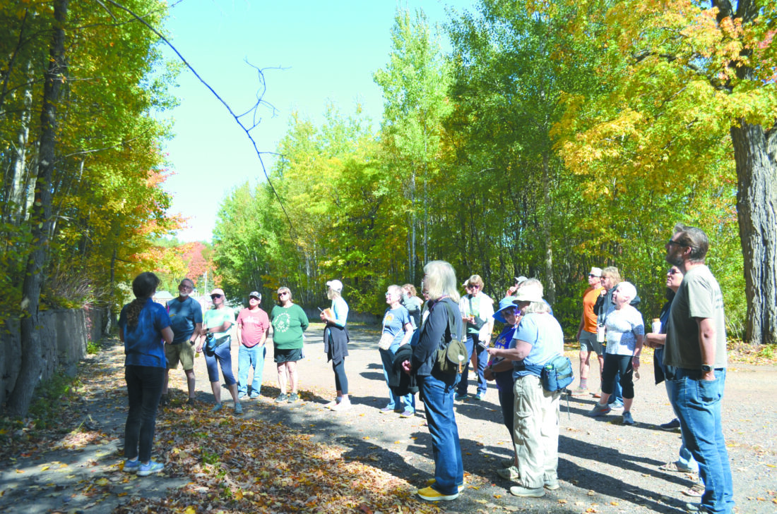 - Michigan State University Forest Extension Forestry and Natural Resources Educator Anna Ellis educates a group of hikers as part of the Extension’s collaborative history hikes with the Marquette Regional History Center. (Journal photo by Abby LaForest)