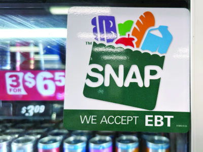 - A SNAP EBT information sign is displayed at a gas station in Riverwoods, Ill., on Nov. 1. (AP photo)