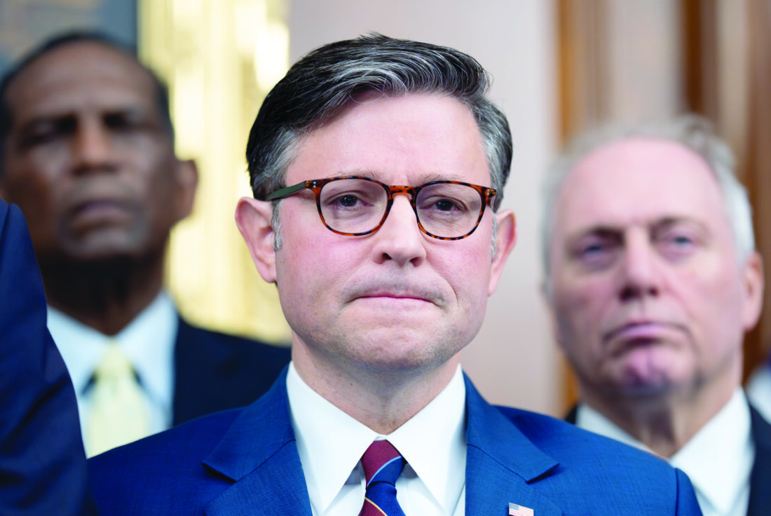 - Speaker of the House Mike Johnson, R-La., pauses during a news conference at the Capitol in Washington on Tuesday. (AP photo)