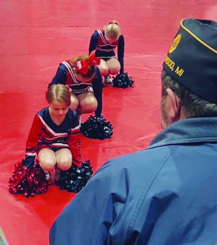 - Aspen Ridge cheerleaders perform a routine to honor local veterans during a pep rally at Westwood High School on Tuesday for Veterans Day. (Courtesy photo)