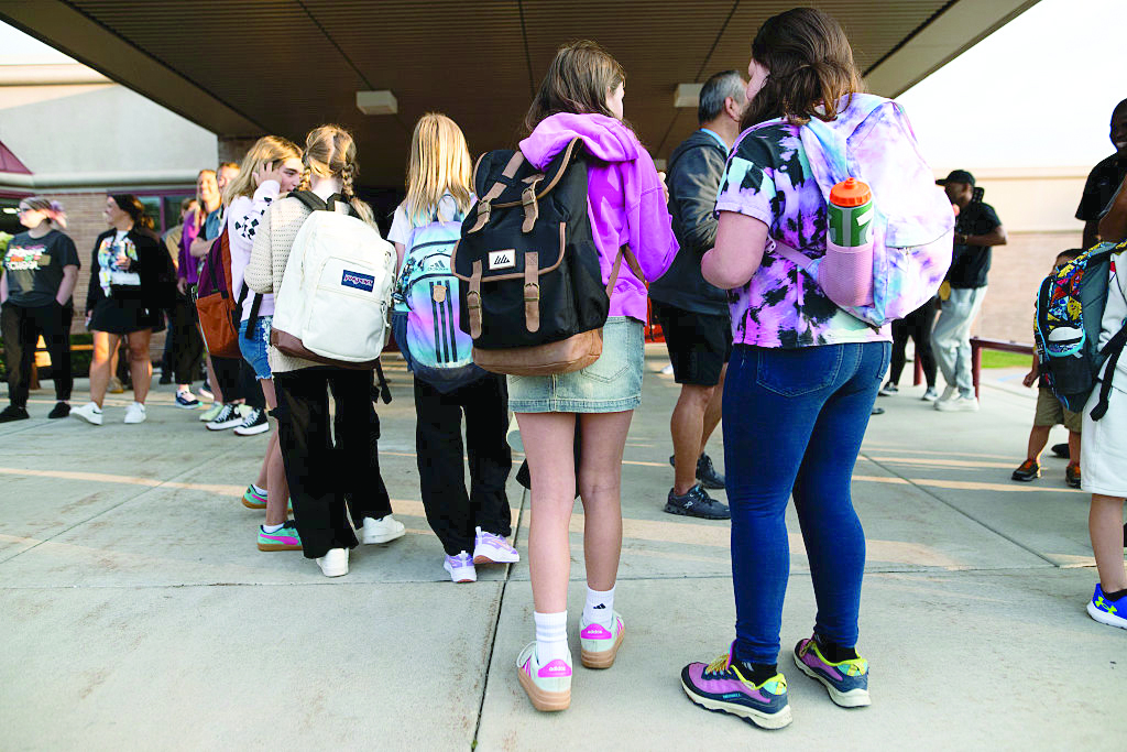 Students arrive for the first day of school at Deerwood Elementary on Sept. 2 in Eagan, Minnesota. (Photo courtesy of Michigan Advance)