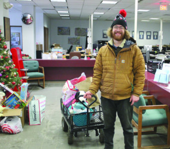 A worker for the Salvation Army picks up toys from the Mining Journal’s Cheer Club. The Mining Journal is still accepting donations for its annual Cheer Club and is looking to donate a record number of presents to children and teens in need this year. Donations to the Cheer Club can be brought to The Mining Journal office, located at 249 W. Washington St. in Marquette, from 8 a.m. through 5 p.m. Monday through Friday. (Journal photo by Antonio Anderson)