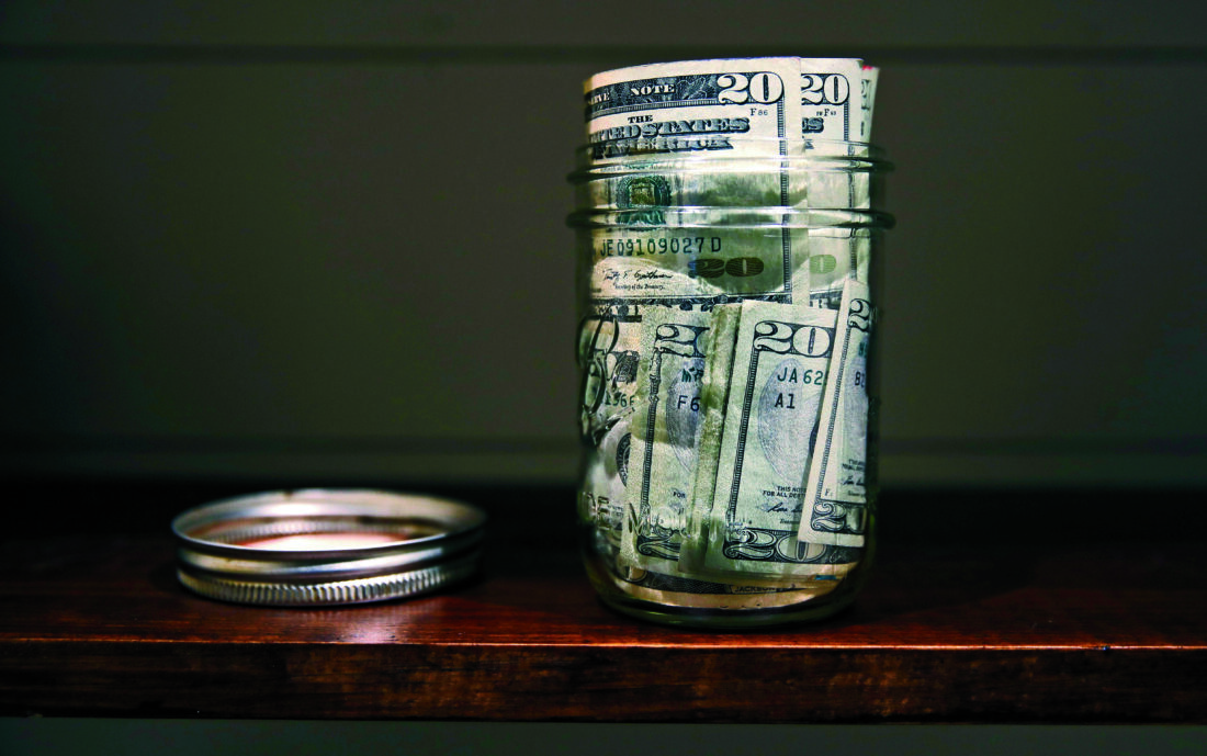 A canning jar filled with money sits on a shelf in East Derry, N.H., June 15, 2018. (AP photo)