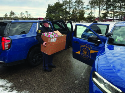Community Service troopers from MSP’s Eighth and Second District helped relay the gifts, ensuring there was no impact to law enforcement or public safety services.