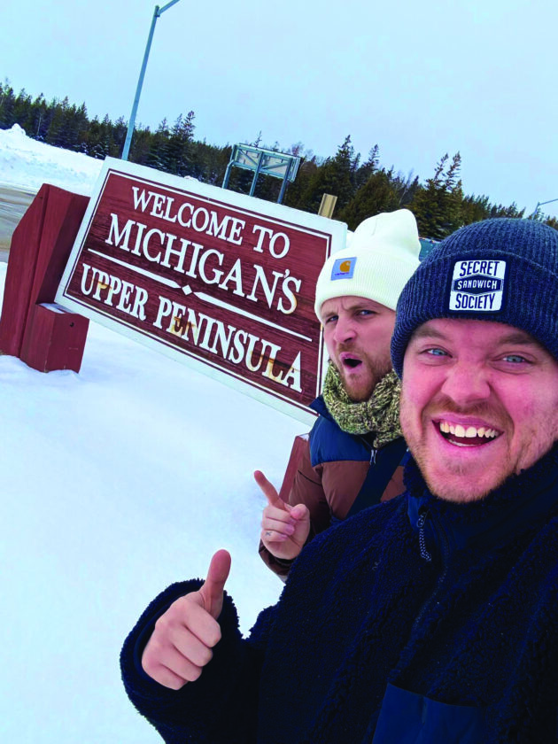 British social media influencers Josh and Jace are seen shortly after crossing the Mackinac Bridge into the Upper Peninsula. (Courtesy photo)