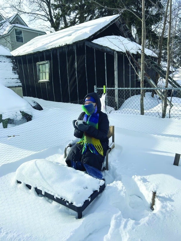 Windchill temps didn’t stop this Yooper from enjoying her morning coffee outdoors. (Journal photo by Annie Lippert)