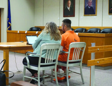 Kaw Tung, right, sits with Defense Attorney Jennifer France, left, in the Delta County 47th Circuit Court during his arraignment Wednesday. Tung pleaded no contest to one count of homicide - murder in the second degree. (Escanaba Daily Press photo by Sophie Vogelmann)