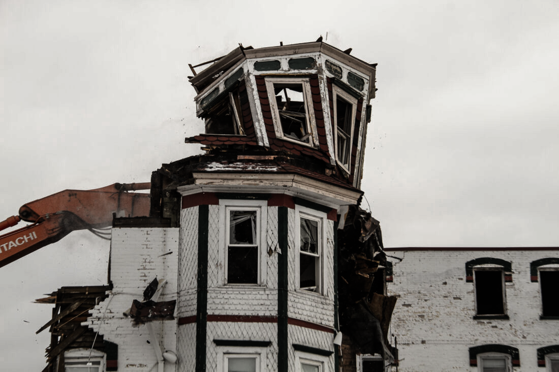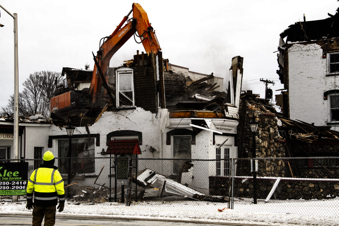 The House of Ludington’s iconic sign was removed first and stored for safe keeping. Site clearing and fence enclosures were erected for public safety. With the capable help of the local Klee family construction team demolition commenced.