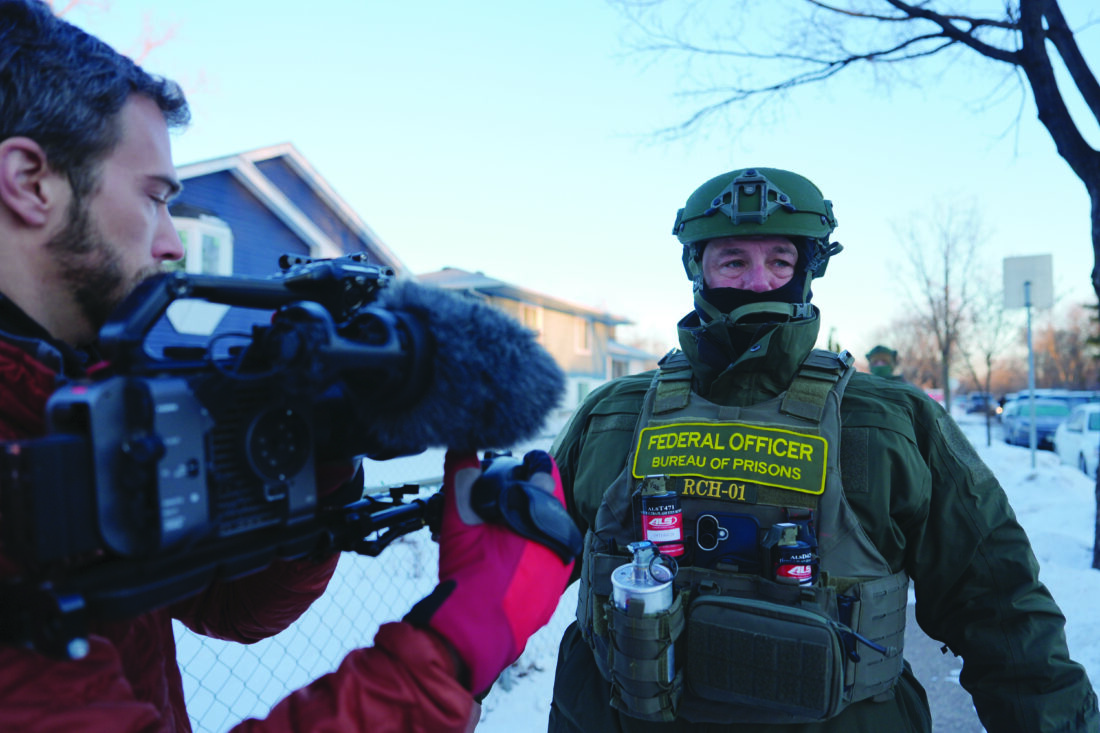 Federal Bureau of Prisons officers threaten AP video journalist Mark Vancleave with arrest on Wednesday in Minneapolis. (AP photo)