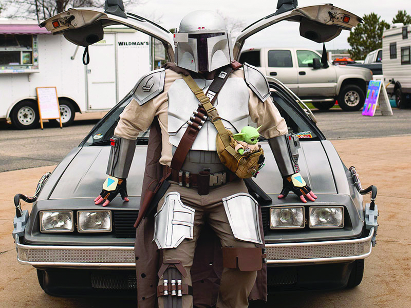 The Mandalorian stands in front of a DeLorean at a previous Bay-Con event. (Courtesy photo)