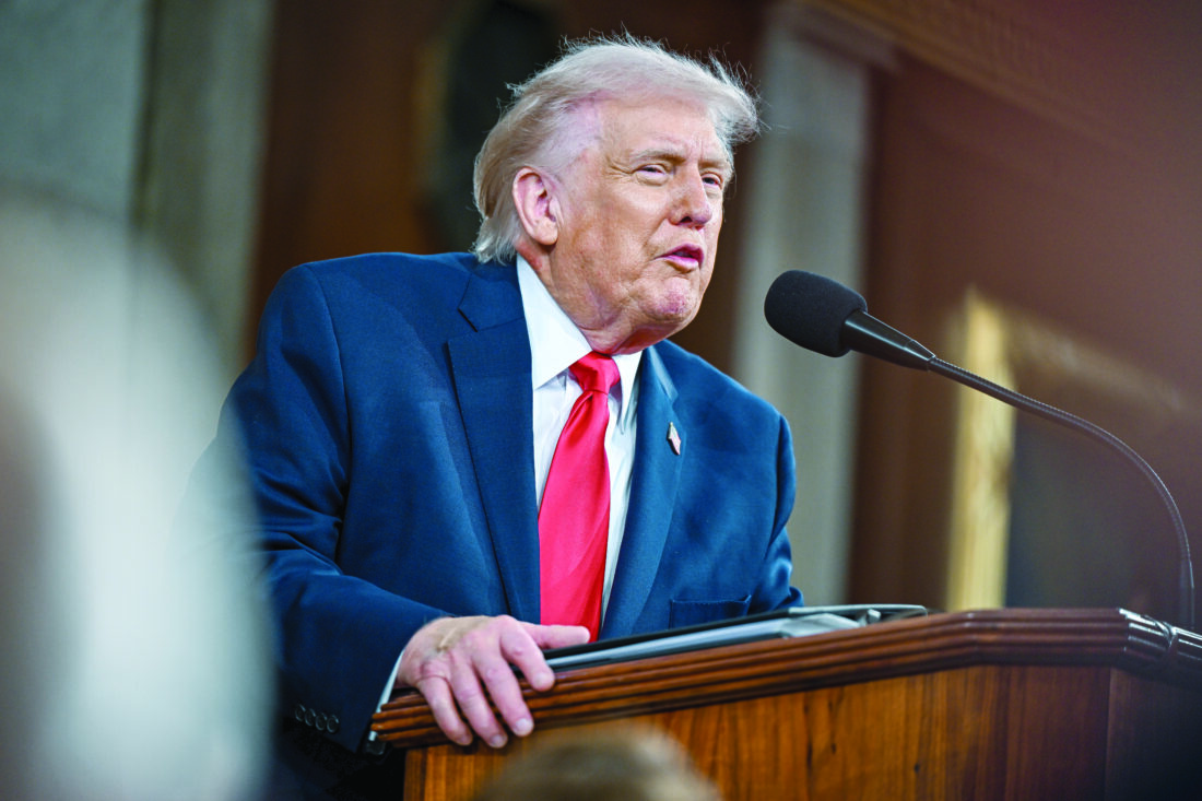President Donald Trump delivers the State of the Union address to a joint session of Congress in the House chamber at the U.S. Capitol in Washington on Tuesday. (Kenny Holston/The New York Times via AP)