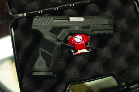 Pictured is a pistol with trigger lock. (Photo courtesy of Jeremy Marble)
