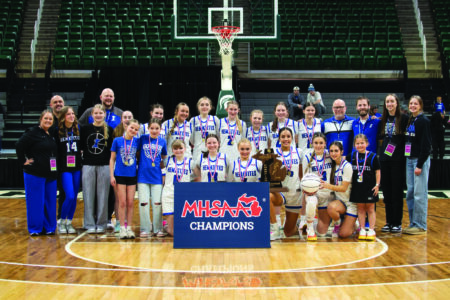 The Ishpeming Lady Hematites pose following their winning the state championship Saturday. (Photo courtesy of Cara Kamps)