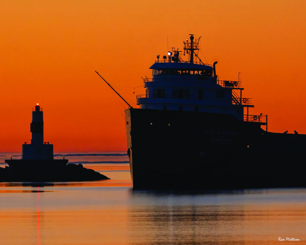 The lake freighter Kaye E. Barker arrives in Marquette just before sunrise on Wednesday. (Photo courtesy of Ron Mattson)