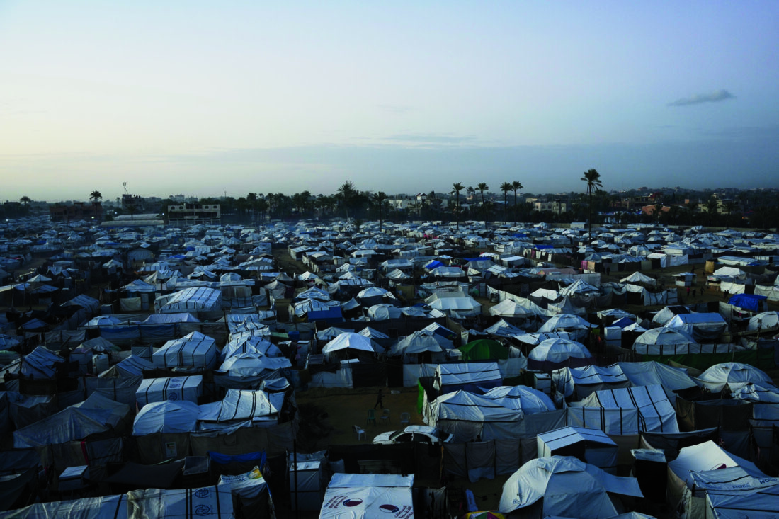 A tent camp for displaced Palestinians stretches across an area in Deir al-Balah, in the central Gaza Strip, Saturday. (AP photo)