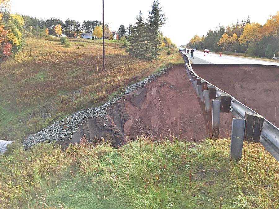 Heavy rainfall around Oct. 18 caused flooding of the east branch of the Chocolay River and led to the failure of a four-culvert system under M-94. The washout was estimated to be about 90 feet wide and to a depth of about 35 feet.