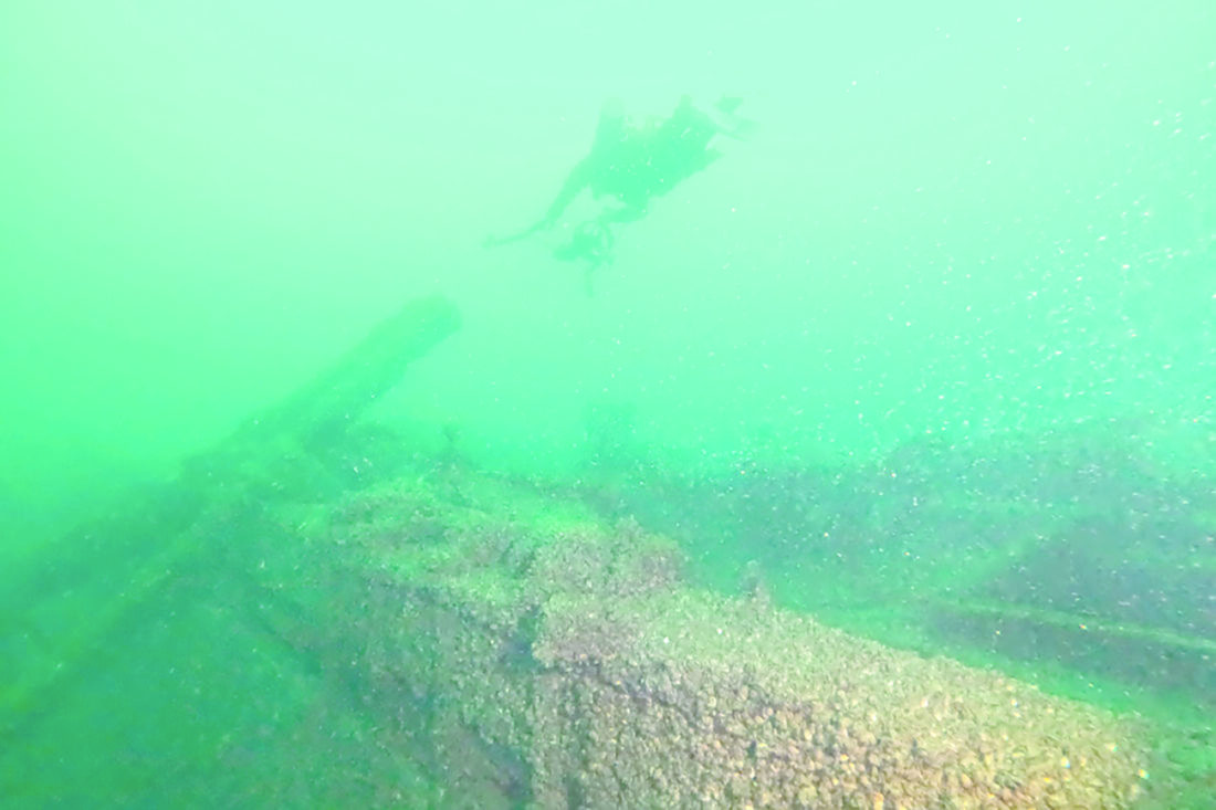 - In this photo released by the Wisconsin Historical Society, Wisconsin Historical Society diver Zach Whitrock collects images of the wreckage of the schooner F.J. King for a photo model on Aug. 23, 2025. (Wisconsin Historical Society via AP)