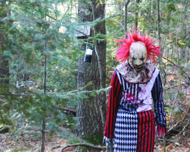 - A creepy clown “welcomes” visitors to the fourth annual Aspen Ridge Haunted Walk on Friday. (Journal photo by Justin Marietti)