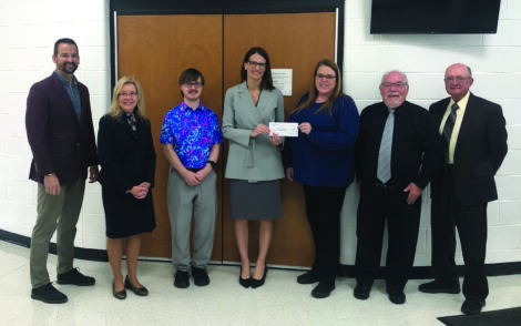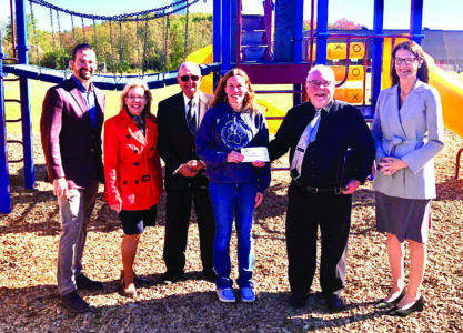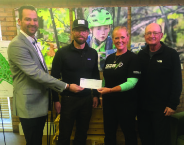 The Shiras Institute made a $10,000 donation to the 906 Adventure Team to help fund their new bike park. This is the first of a multi-year donation toward the 906 Grant Request. Pictured, from left, are Andrew Wallner, Shiras Institute, Marc Salm and Elizabeth Peterson, 906 Adventure Team and Ward Rantala Shiras Institute.(Courtesy photo)